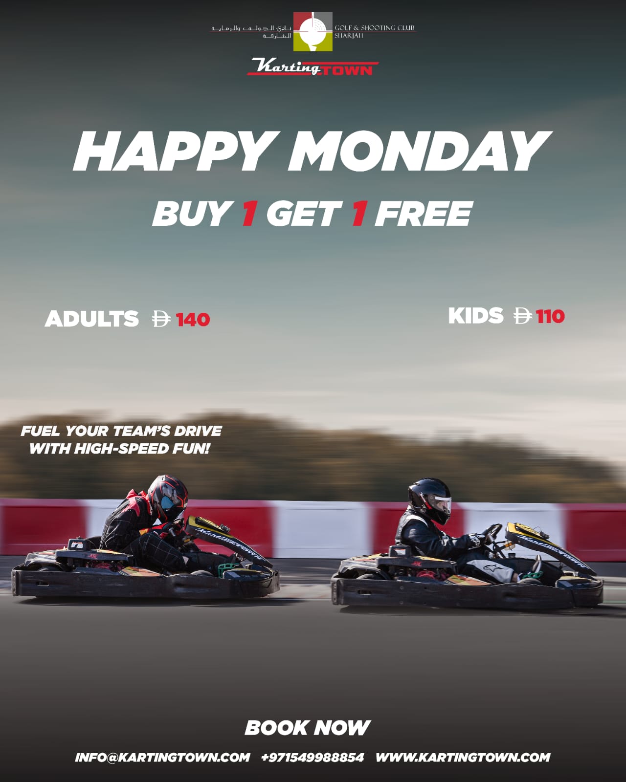 Are you a fitness and motorsports enthusiasts? Then get behind the wheel at Karting Town SHJ for some 1hr nonstop driving experience. Build Race Craft and Burn Them Extra Calories! The most fun and extreme way!!